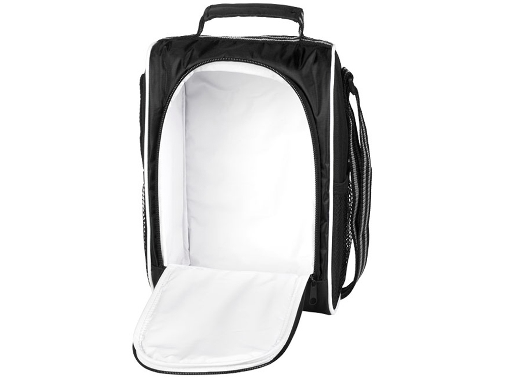 Спортивная сумка-холодильник для ланчей. Практичная и прочная сумка для ланчей с основным отделением с изолирующим слоем и застежкой-молнией и боковыми сетчатыми карманами. В сумке также предусмотрена короткая ручка и удобный регулируемый плечевой ремень. Полиэстер 420D.