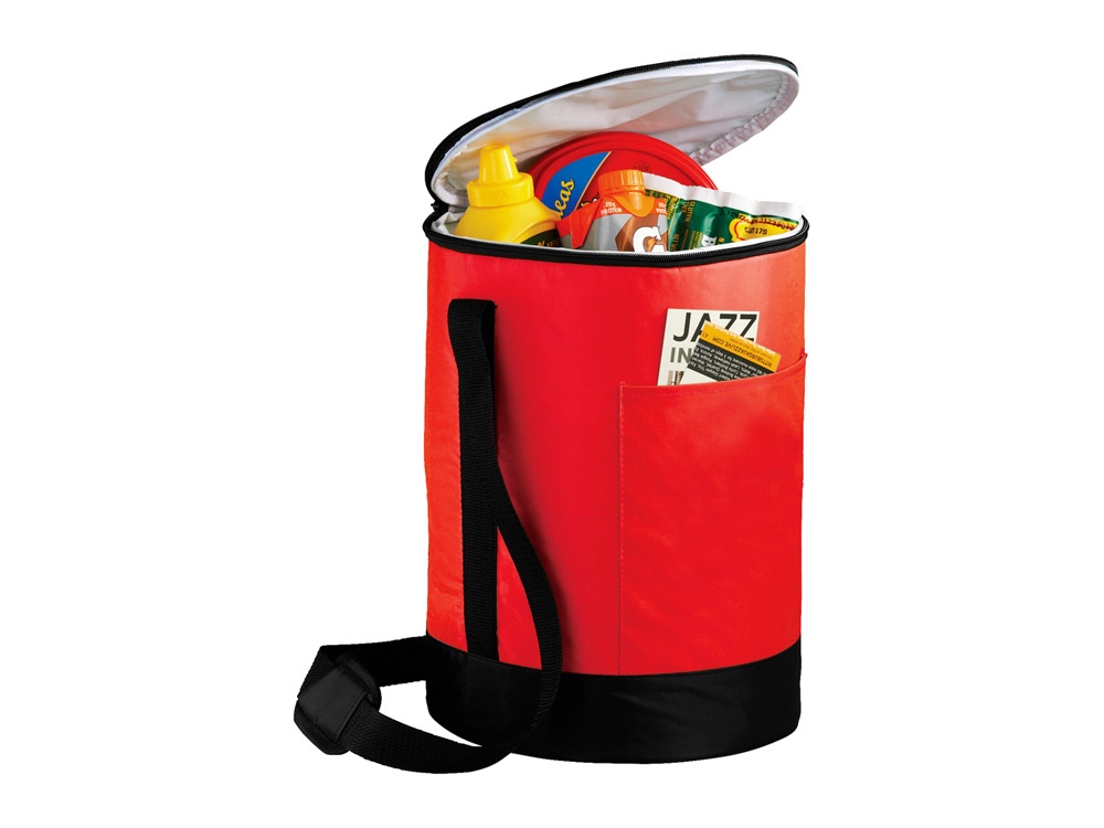 Сумка-холодильник Bucco цилиндрической формы. Цилиндрическое большое основное отделение на молнии. Открытый передний карман. Сетчатый карман. Регулируемый плечевой ремень с мягкой подкладкой. Изоляция PEVA. Термотрансфер (1 цвет (цветные изделия)) на данный товар осуществляется бесплатно. Оплачивается только настройка оборудования в размере 8700 рублей на весь тираж.