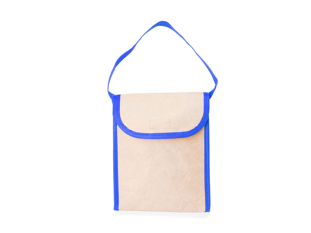 Сумка-холодильник из ламинированной бумаги с изотермической алюминиевой подкладкой и изоляционной пеной толщиной 2 мм. Ручка 60 см и клапан с застежкой-липучкой. Окантовка на сумке и ручке в тон