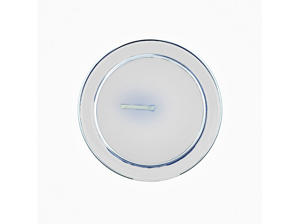 Ароматическая свеча с запахом ванили в металлическом круглом подсвечнике с крышкой с прозрачным окошком. Цвет свечи в тон подсвечника. белый фитиль