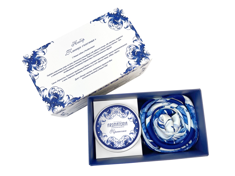 платок- 70% искусственный шёлк, 30% вискоза, свеча- алюминий, натуральный соевый воск, парфюмерная композиция