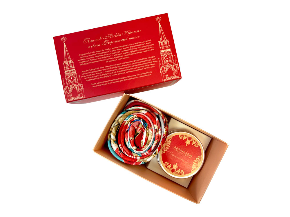 Набор: платок Кремль – Москва и свеча Бархатный пион
