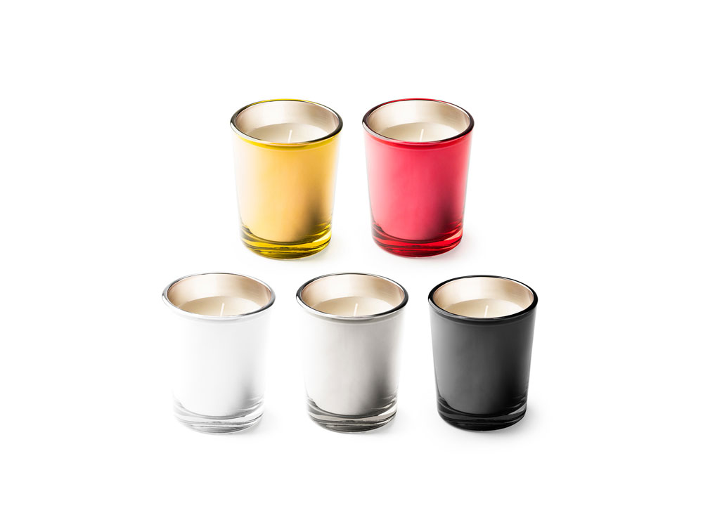 Ароматическая свеча в стеклянном подсвечнике с разнообразными ароматами (кофе, хвоя, лаванда, ваниль и клубника).