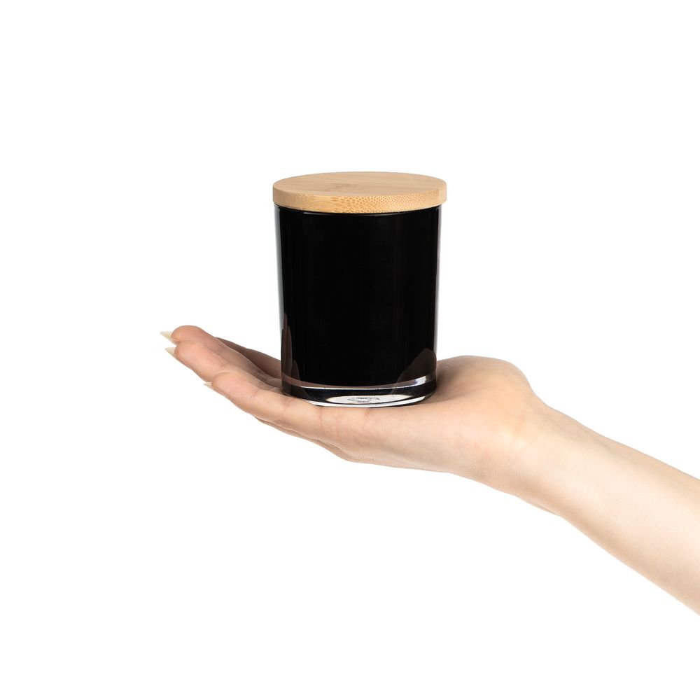 воск, дерево, крышка - дерево, подсвечник - стекло, свеча - воск, кокосовый, парафин, стекло, фитиль - дерево