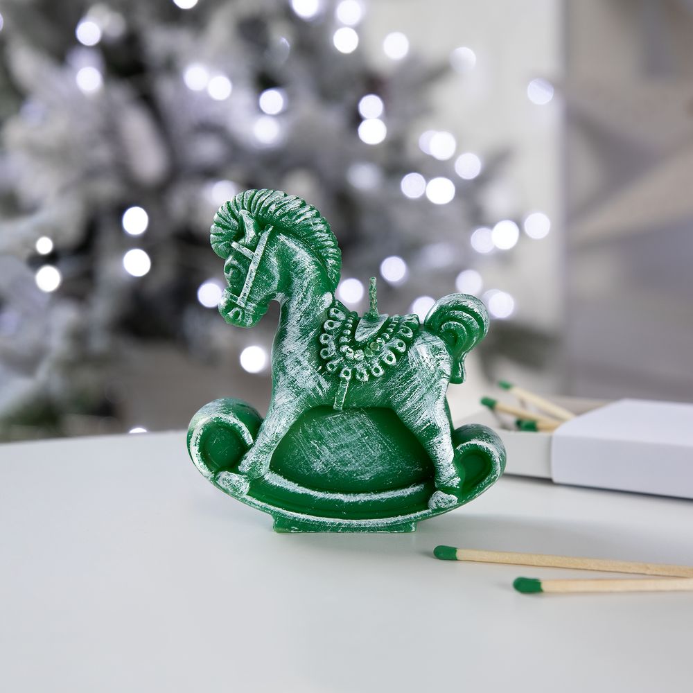 Модель : Свеча фигурная «Лошадка-качалка», зеленая