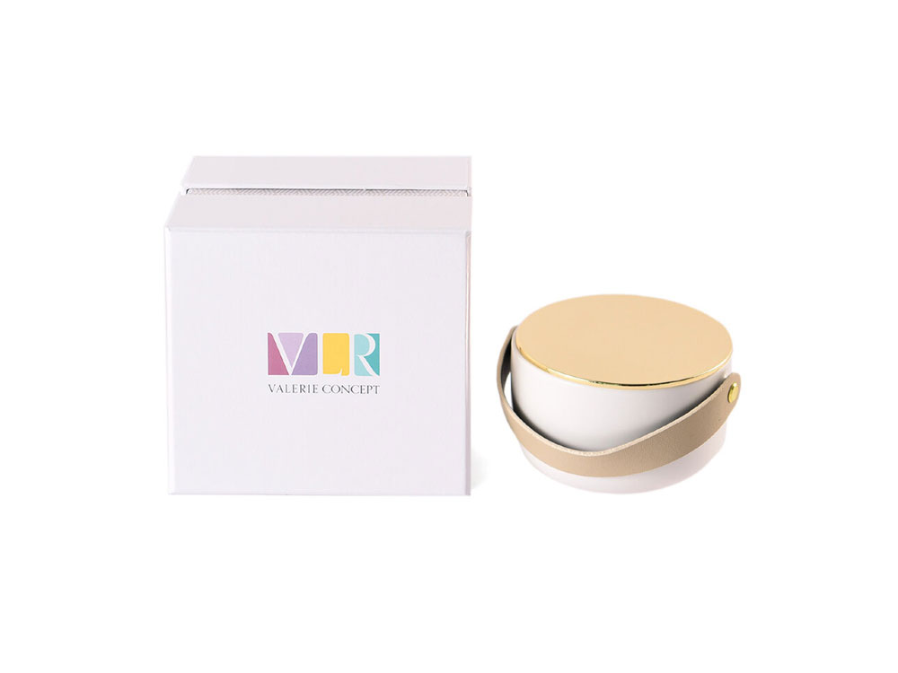 Стильная свеча в фарфоровом кашпо с крышкой и кожаными ручками от Valerie Concept. Изготовлена из натурального соевого воска с хлопковым фитилем, подарит вам долгие часы наслаждения и умиротворения, благодаря нежному аромату с нотками чарующих цветов и хлопка.