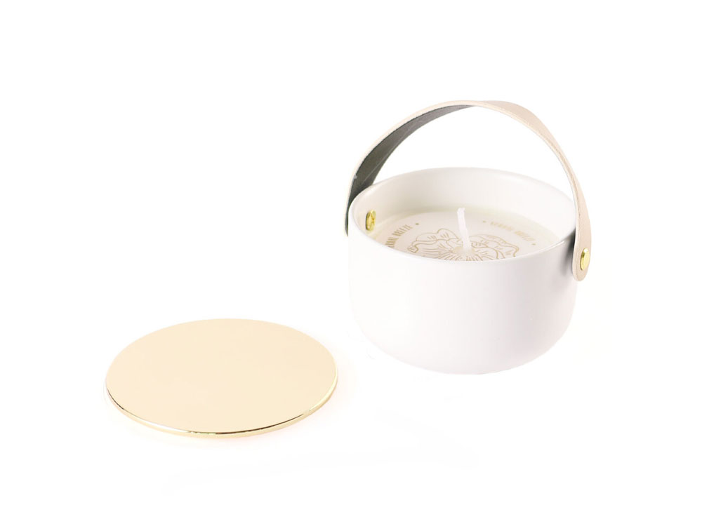 высокотемпературный фарфор, металлическая крышка, ручка ПВХ, соевый воск