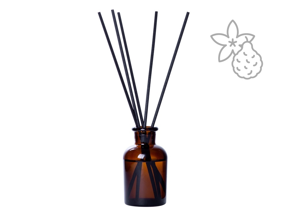 Объём диффузора 50 мл. Его будет достаточно для умеренного поддержания аромата в комнате до 15м2 в течение двух месяцев использования. Насыщенность аромата регулируется количеством используемых фибровых палочек.