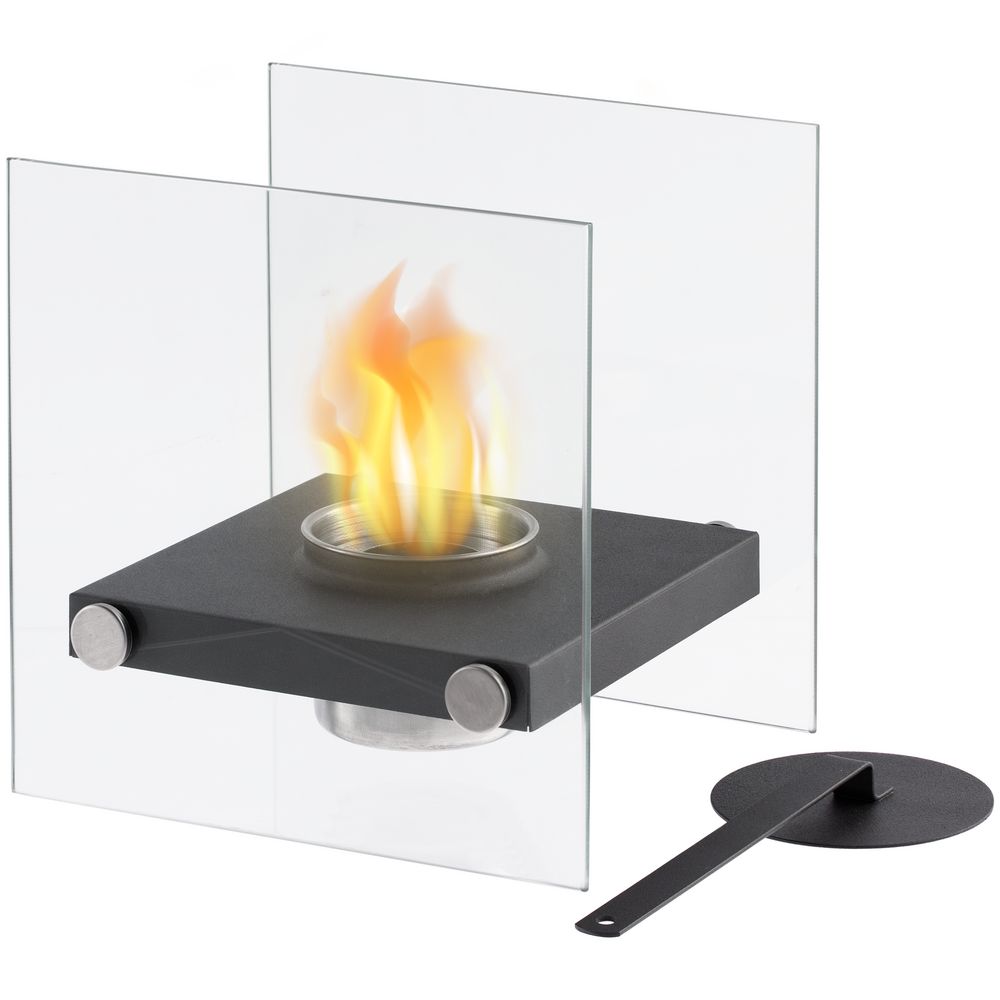 кочерга - нержавеющая сталь, порошковое покрытие, нержавеющая сталь, основание - сталь, порошковое покрытие, сталь, стекло, стенки - стекло, закаленное, чаши для топлива - нержавеющая сталь