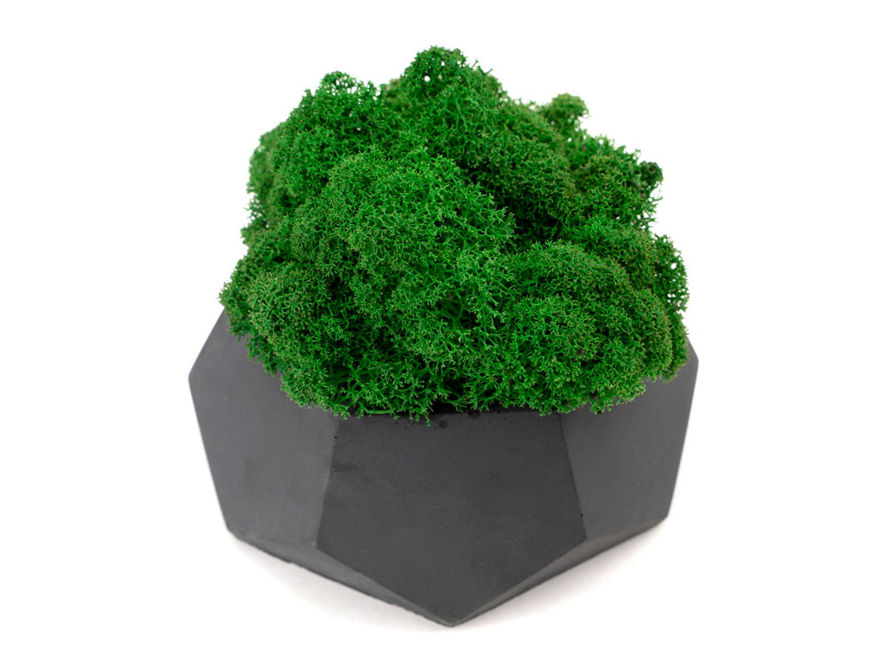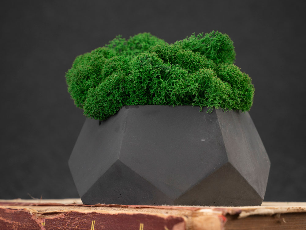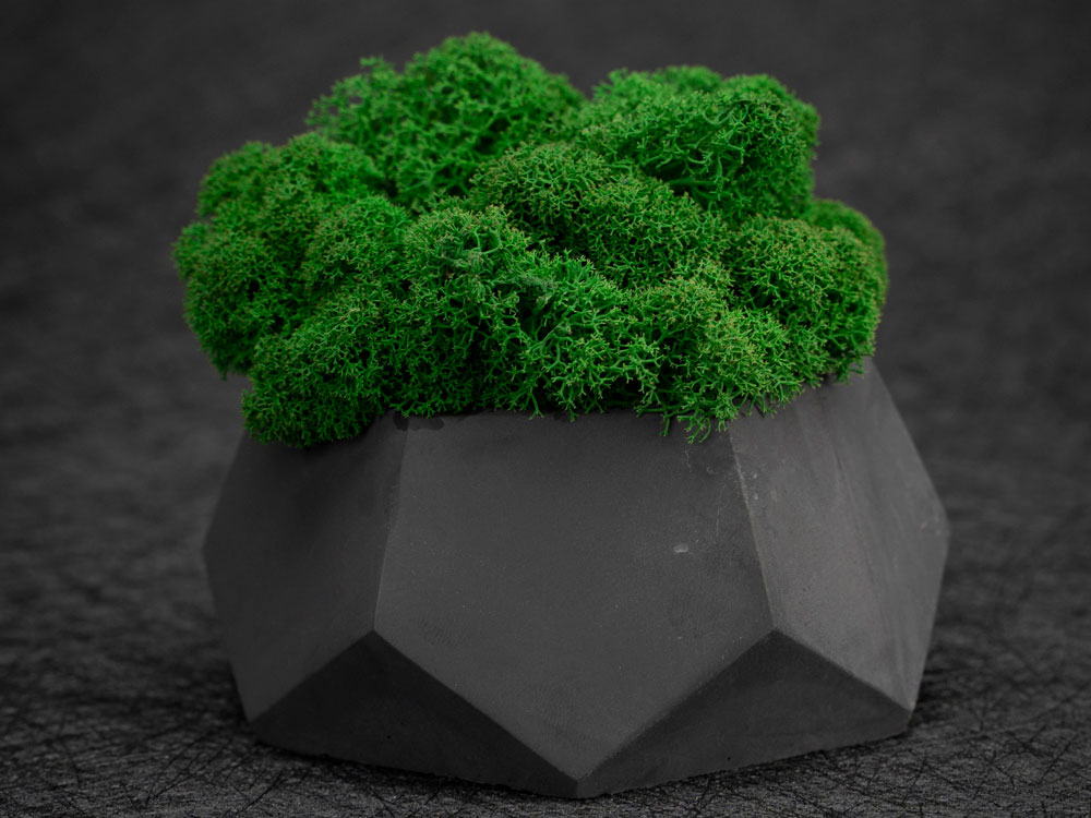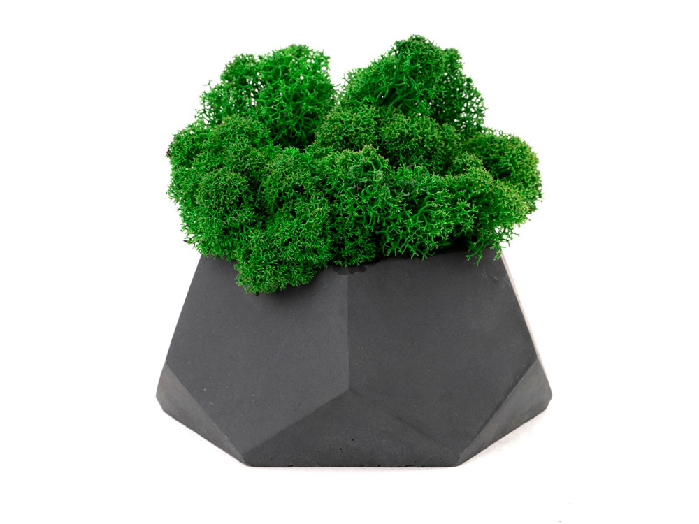 Кашпо бетонное со мхом (альфа-антрацит мох зеленый), QRONA