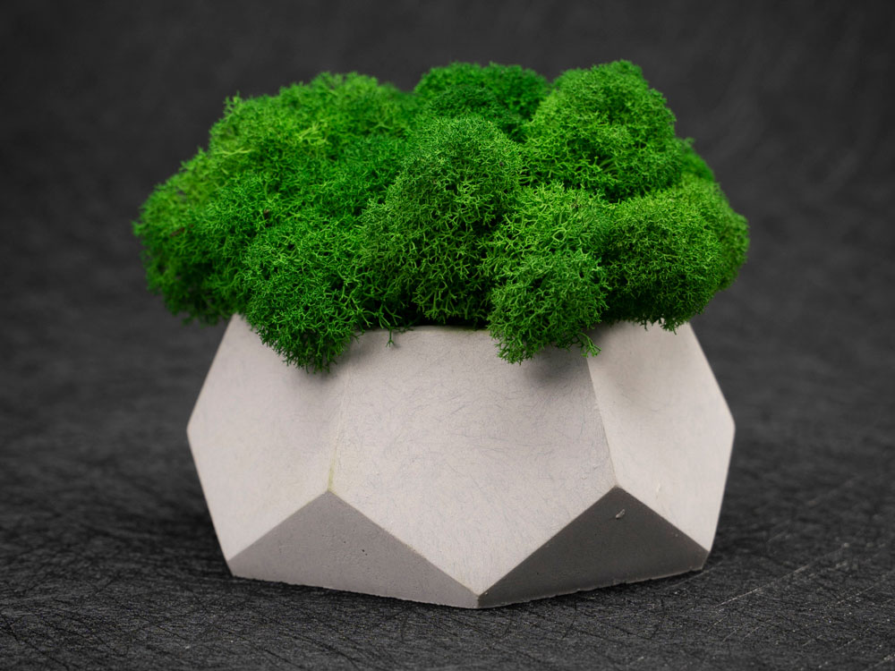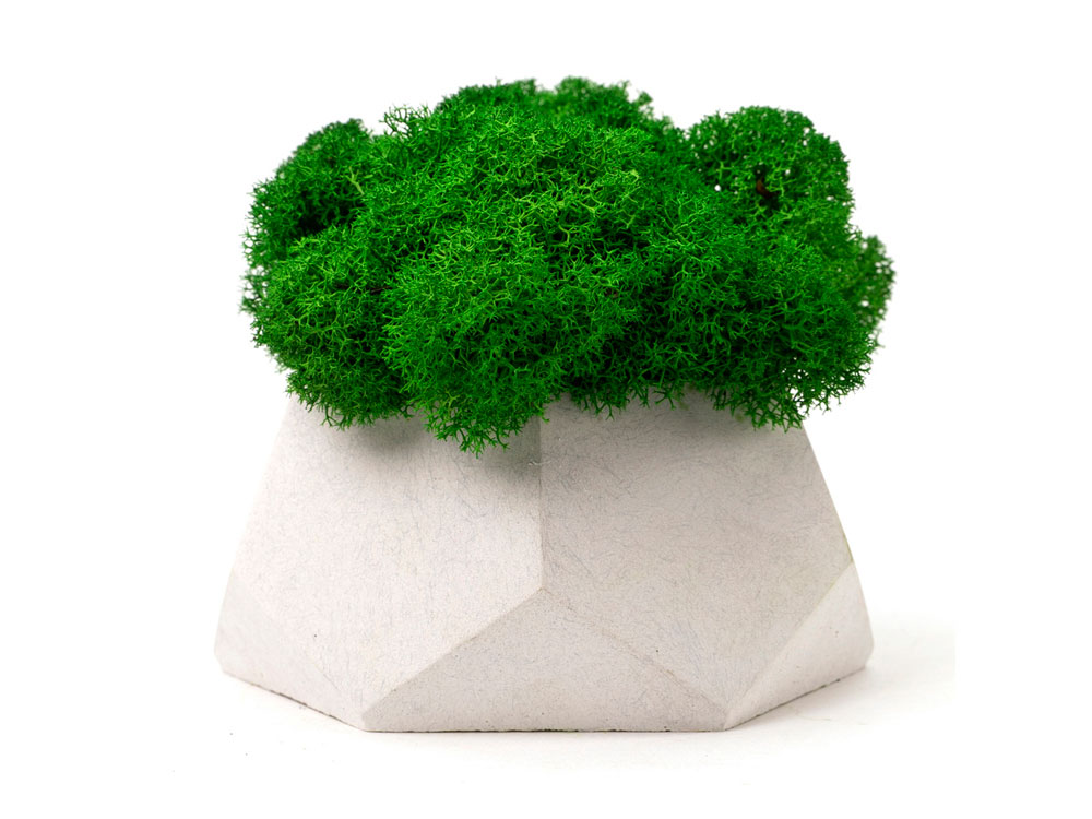 Кашпо бетонное со мхом (альфа-циркон мох зеленый), QRONA