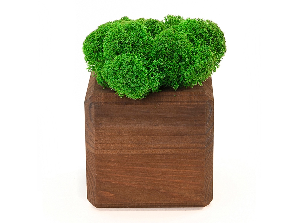 кашпо деревянное из массива, стабилизированный мох