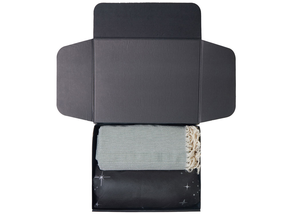 плед - 100% хлопок; подвеска - березвовая фанера; открытка - бумага; мешок - нетканый материал (спанбонд)