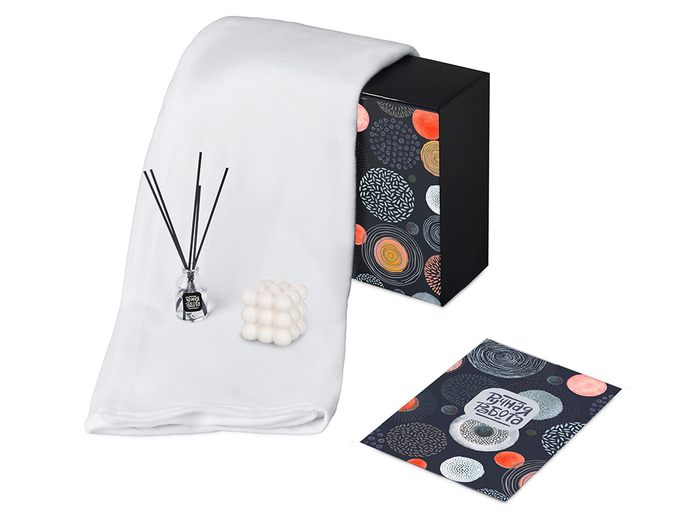 Подарочный набор с пледом, свечой и диффузором, белый
