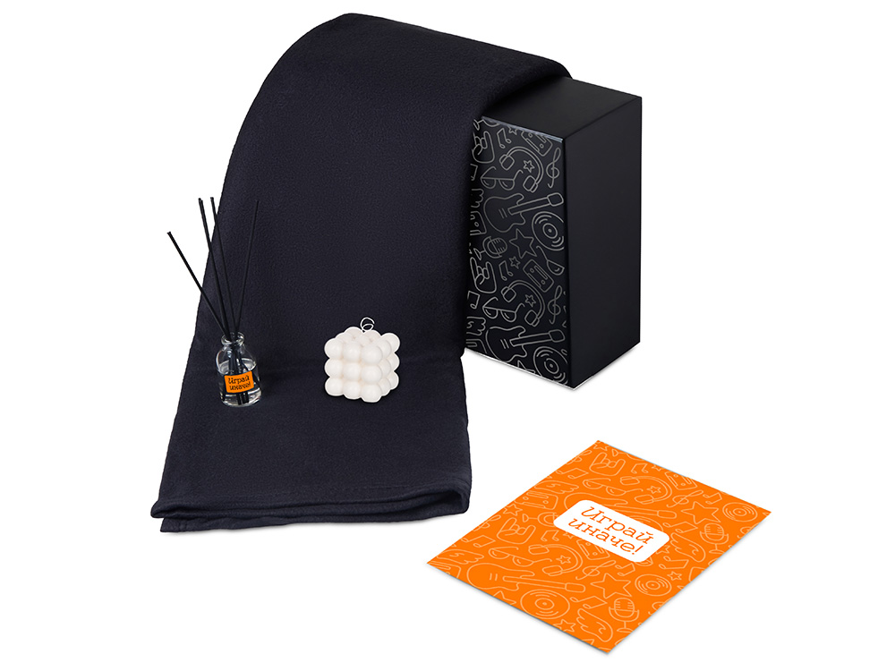 Подарочный набор с пледом, свечой и диффузором, черный