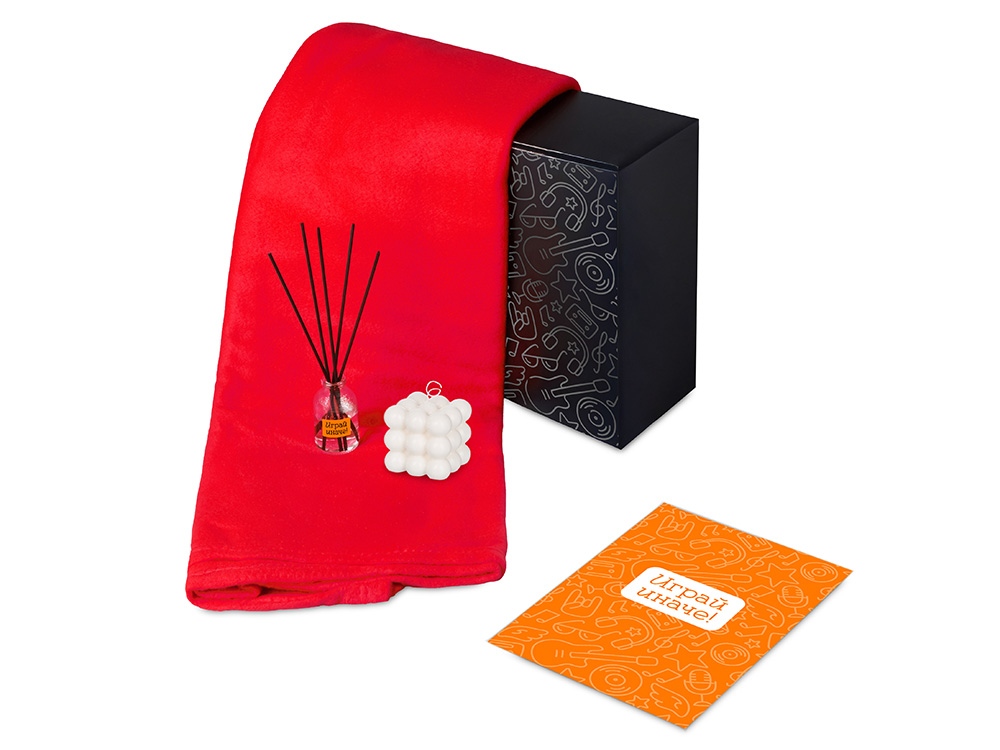 Подарочный набор с пледом, свечой и диффузором, красный