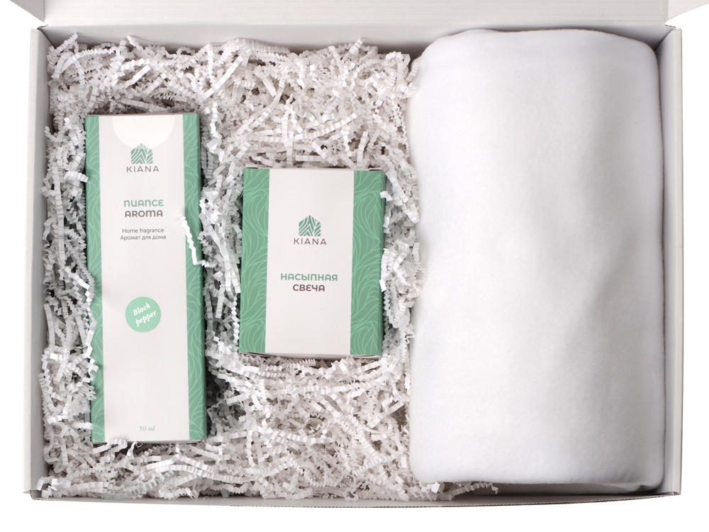 Набор состоит из флисового пледа, диффузора Kiana и насыпной свечи, которые вместе создадут настоящую магию, превратив обычный вечер в время релакса, отдыха и заботы о себе.