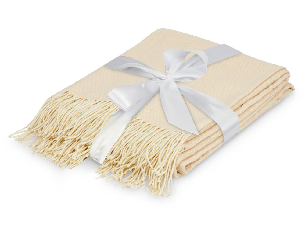 Большой размер этого мягкого плотного пледа позволяет использовать его как одеяло и как покрывало для вашего интерьера. По бокам плед украшен бахромой. В комплекте идет упаковочная синяя лента, на которой можно сделать нанесение вашего логотипа. Термотрансфер (1 цвет (белые изделия)) на данный товар осуществляется бесплатно. Оплачивается только настройка оборудования в размере 8200 рублей на весь тираж.