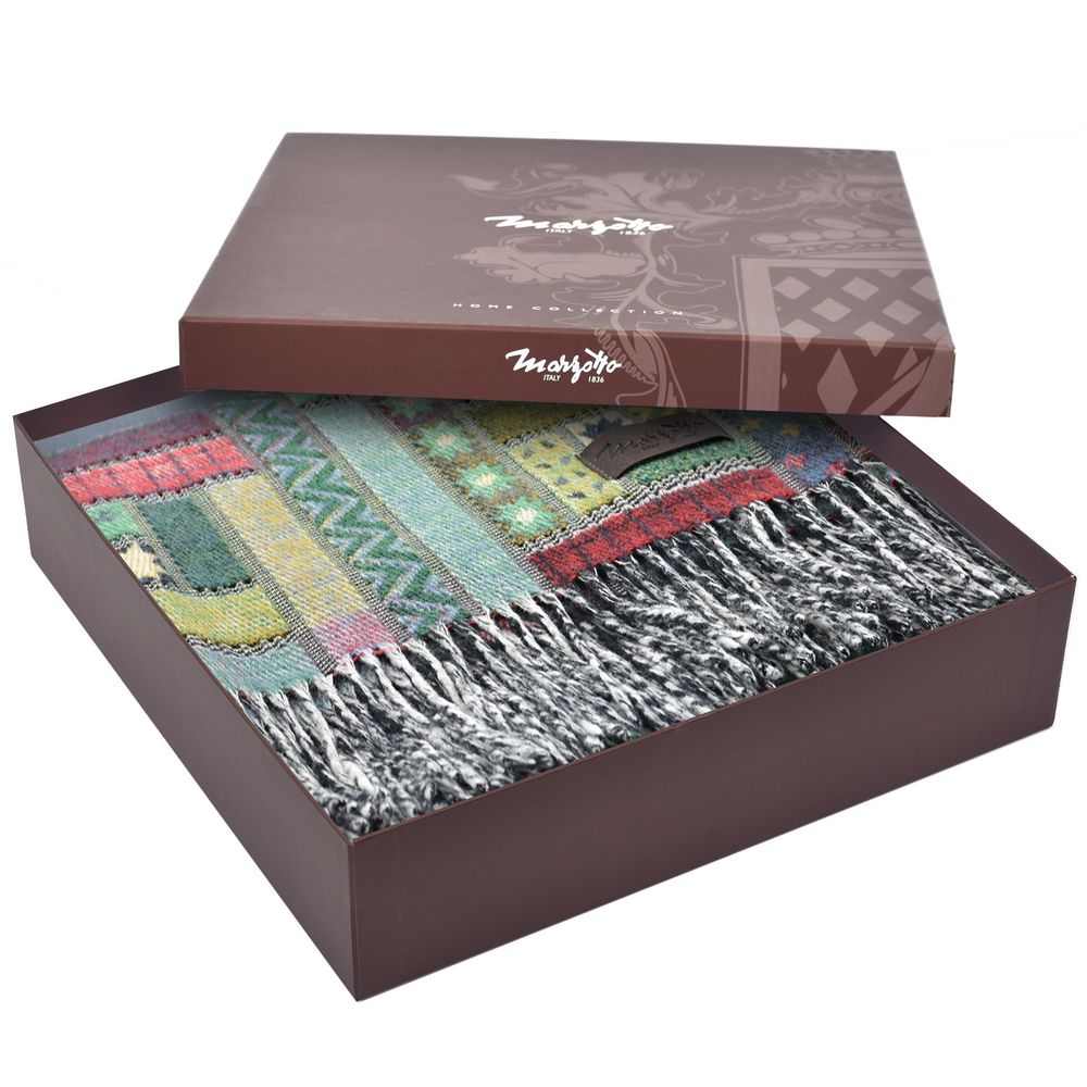 Изысканный плед из шерсти мериноса Baltimora с оригинальным дизайнерским исполнением в стиле пэчворк подарит максимальный комфорт, а также станет запоминающимся подарком и идеальным дополнением интерьера в лучших традициях итальянского бренда Marzotto.