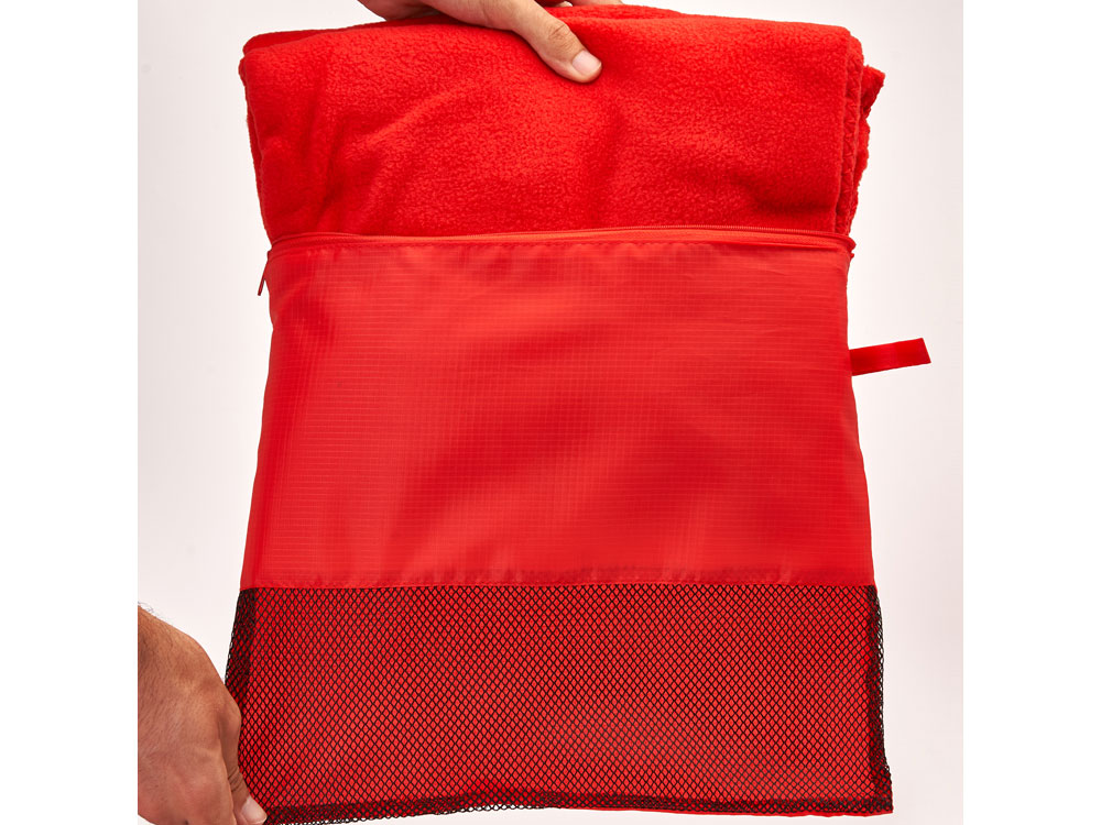 Плед из гладкого флиса плотностью 200 г/м2 с чехлом в тон. Антипиллинговая обработка с одной стороны. Прямоугольный чехол из полиэфирной ткани Oxford и сетки с застежкой-молнией в тон.