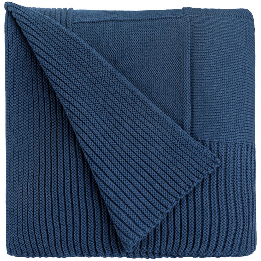 Однотонный плед рельефной вязки «в клеточку» с широким кантом, выполненным резинкой.
