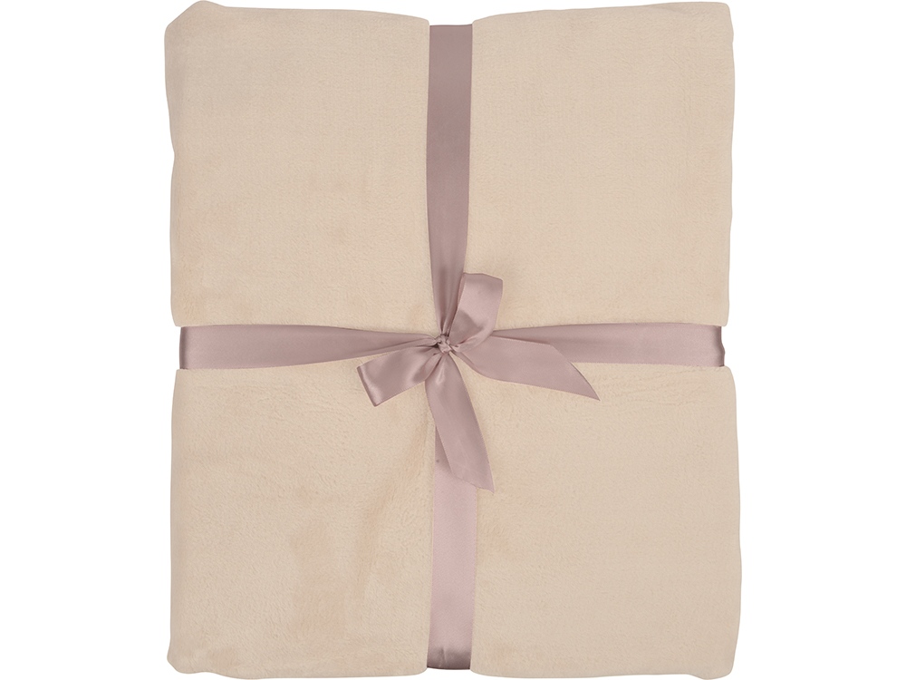 Плед флисовый Natty из переработанного пластика, бежевый с розовой лентой