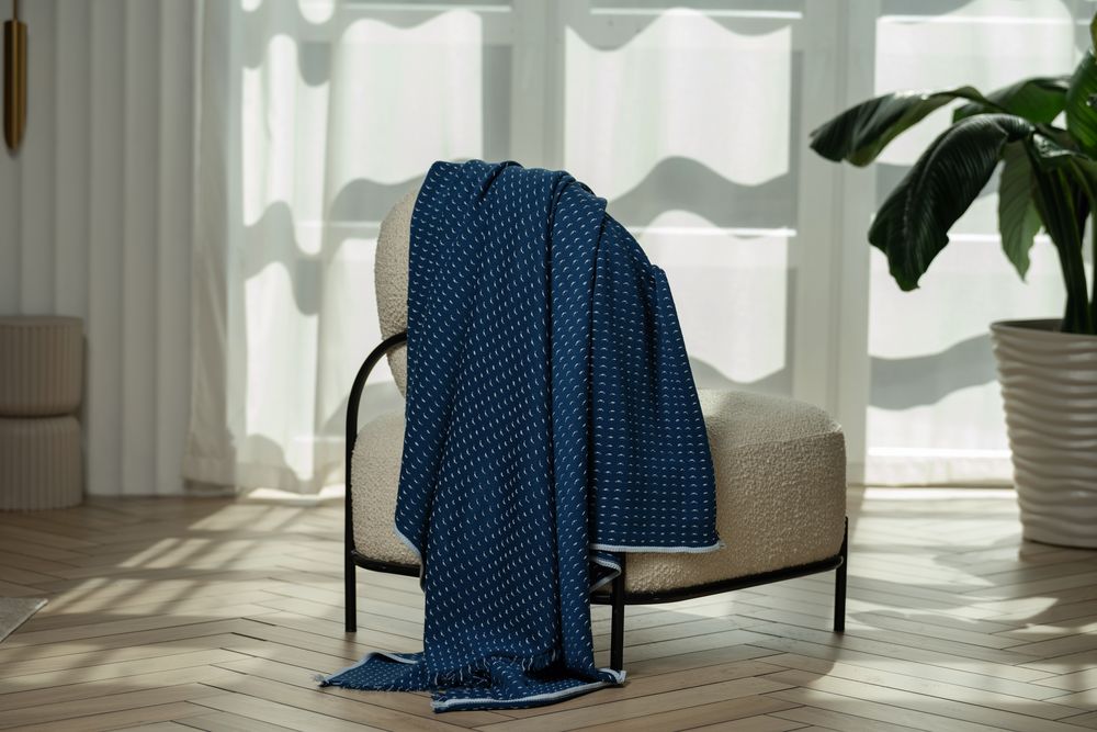Плед из мягкого акрила Fringy особенный и неповторимый. Он выигрышно выделяется необычным узором — контрастными с основным полотном стежками, дополненными элегантной и аккуратной бахромой. Словно соединив в себе искусство вязания с шитьем, плед гармонично впишется в дизайн современной гостиной или спальни.