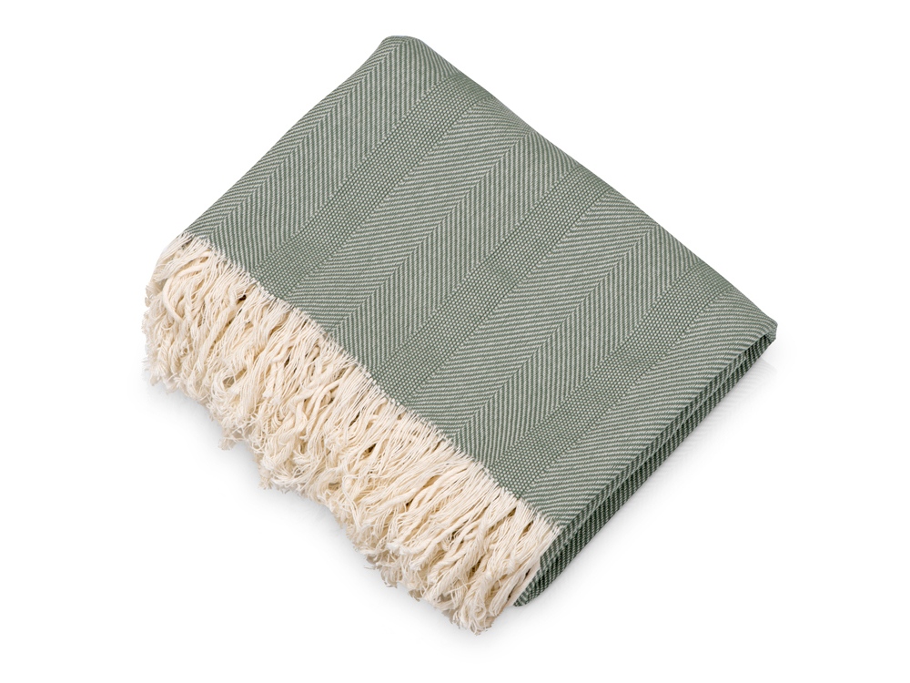 Плотный плед из натурального хлопка с бахромой по бокам. Можно использовать как одеяло или как покрывало для украшения интерьера.