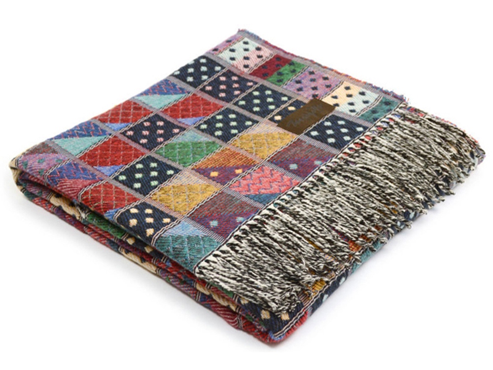 • Плед в стиле пэчворк украшен бахромой, оригинальный дизайн органично впишется в интерьер и станет стильным украшением вашего дома. Постелите плед на диван или на кровать, возьмите с собой на дачу или используйте плед-покрывало в кресле-качалке.