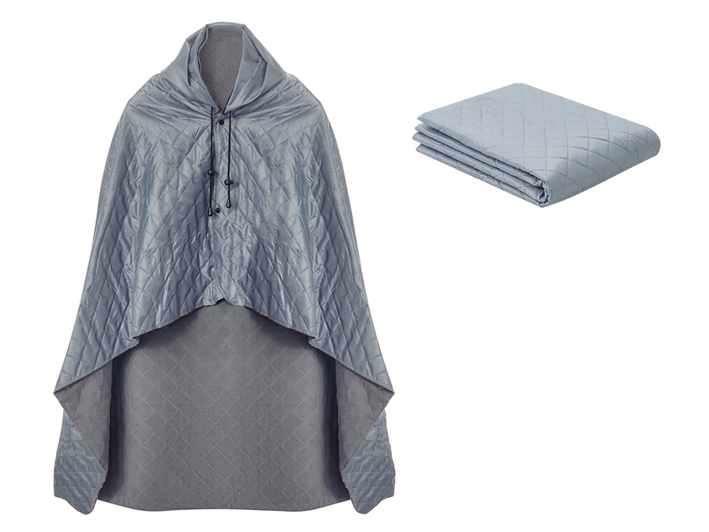 На внутренней стороне из флиса приятно и тепло сидеть, а наружная сторона из полиэстера с водоотталкивающим покрытием не позволяет пледу намокнуть или сильно испачкаться. Для больше удобства использования пледа во время дождя в комплекте идет капюшон, который фиксируется с помощью липучки. Накинув плед на плечи, застегните его на кнопки вверху и наденьте капюшон. Вы не промокните во время неожиданного дождя!