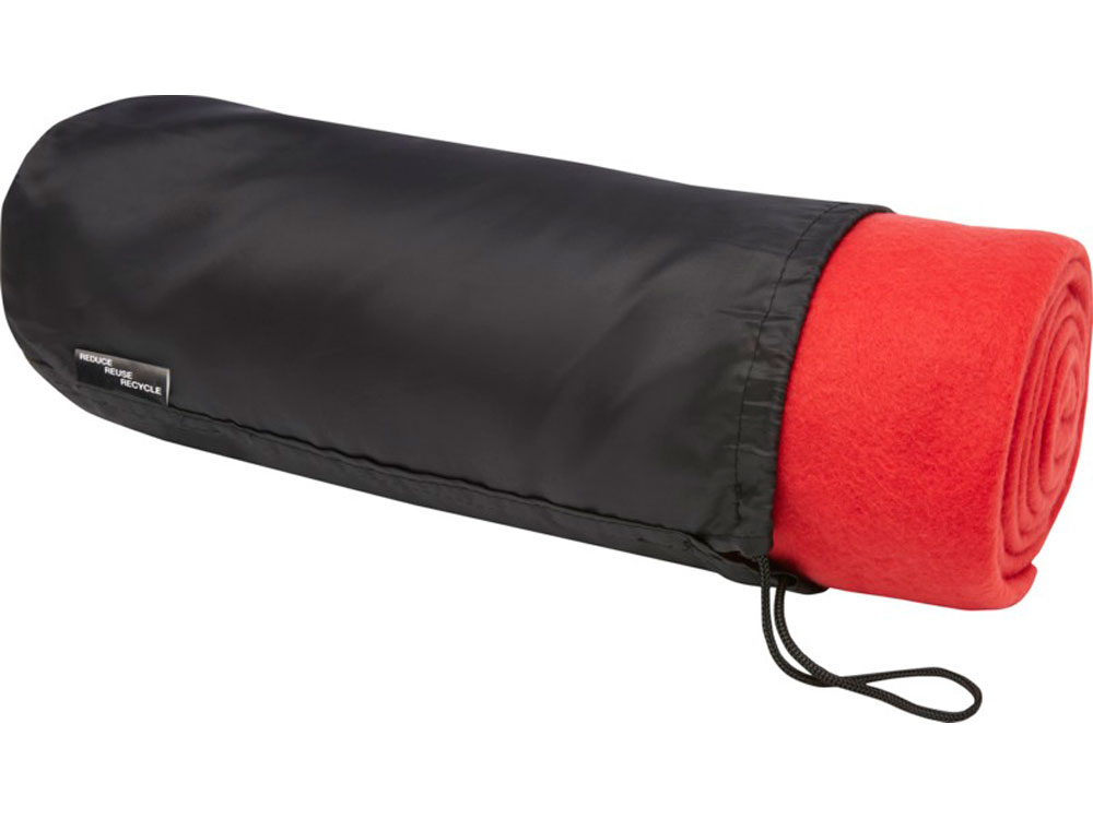Плед из флиса, вторичного ПЭТ, подходит для использования в помещении и на улице. 100% переработанный полиэстер, 180 g/m2. Поставляется с сумкой для переноски из вторичного ПЭТ 190T с застежкой на шнурке. Размер сумки d13 х 34 см. Упаковано в полиэтиленовый пакет из переработанного материала.