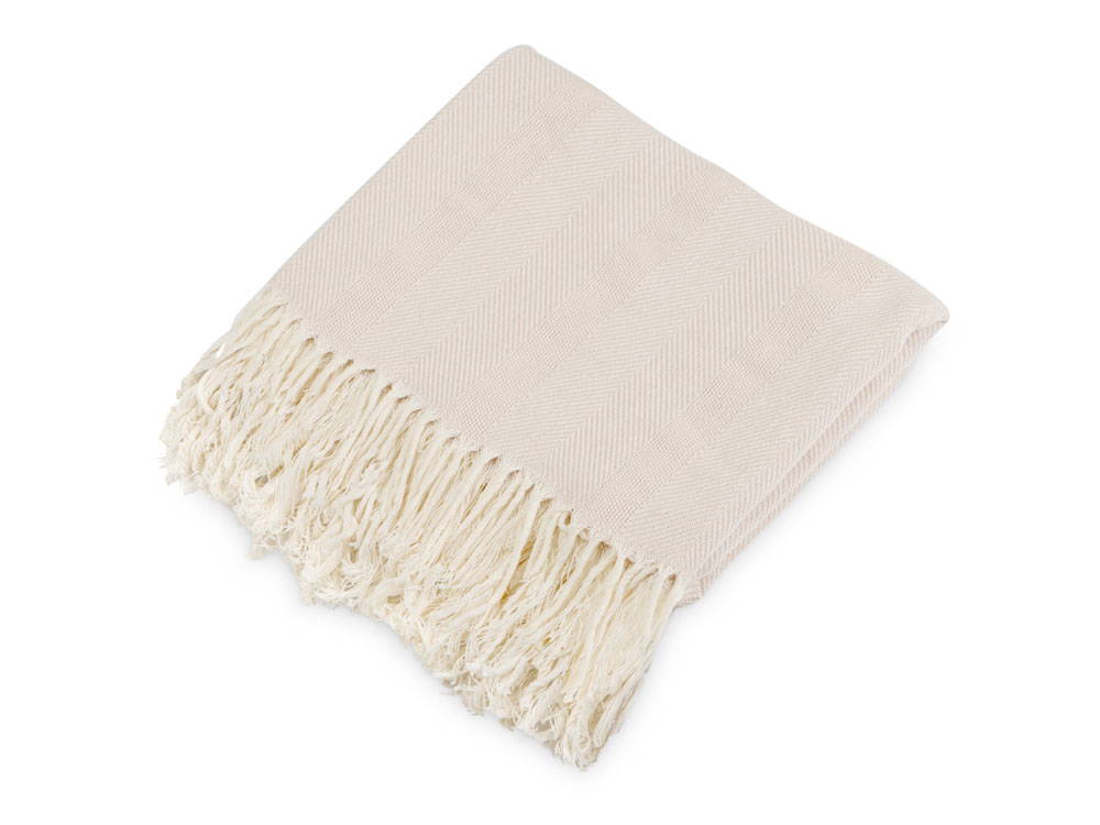 Плотный плед из натурального хлопка с бахромой по бокам можно использовать как одеяло или как покрывало для украшения интерьера.