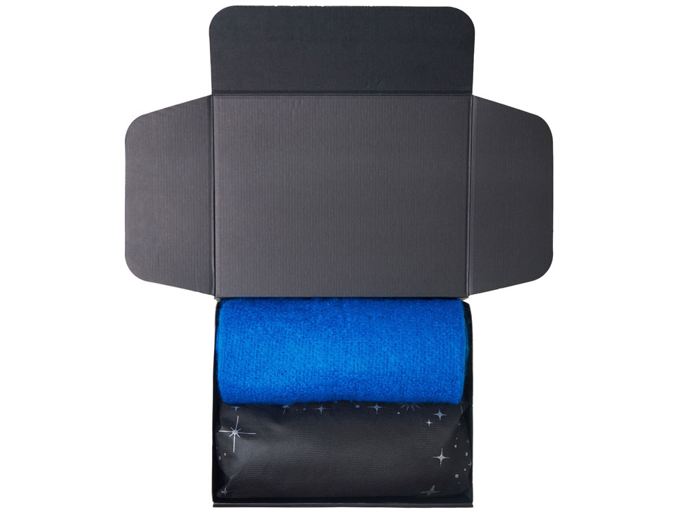 Подарочный набор с пледом, увлажнителем и попкорном, синий
