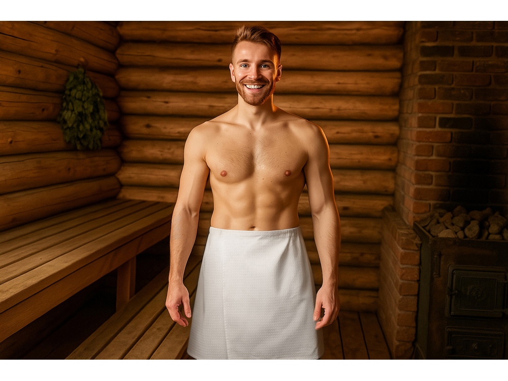 Отличный выбор для любителей парных — вафельный килт, идеально подходящий для бани, сауны или пляжа.