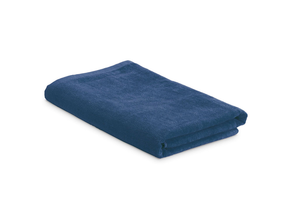 Пляжное полотенце из бархатного хлопка (320 г/м²), которое поставляется в сумке из спанбонда (80 г/м²). Вид нанесения, рекомендуемый поставщиком: вышивка, трансфер, текстильный принтер