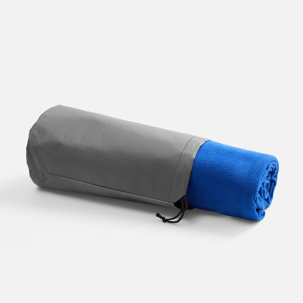 Чехол для пледа Raum выполнен из спанбонда и оснащен утягивающими шнурами.