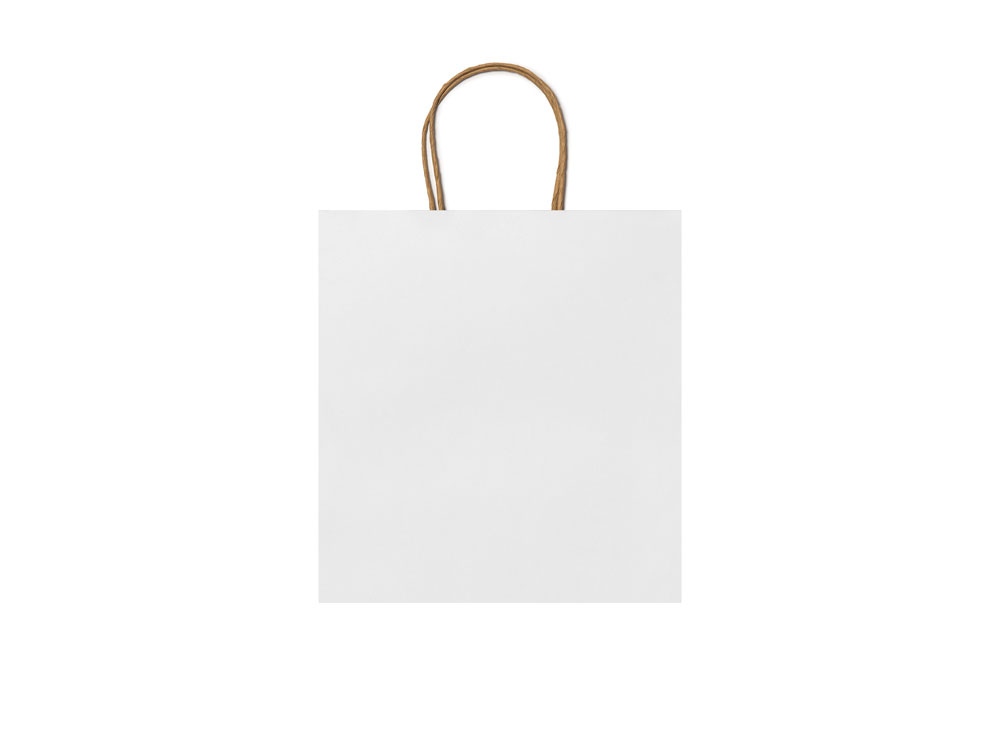 Бумажный пакет 110 г/кв.м натуральной отделки с усиленными короткими ручками витого дизайна.