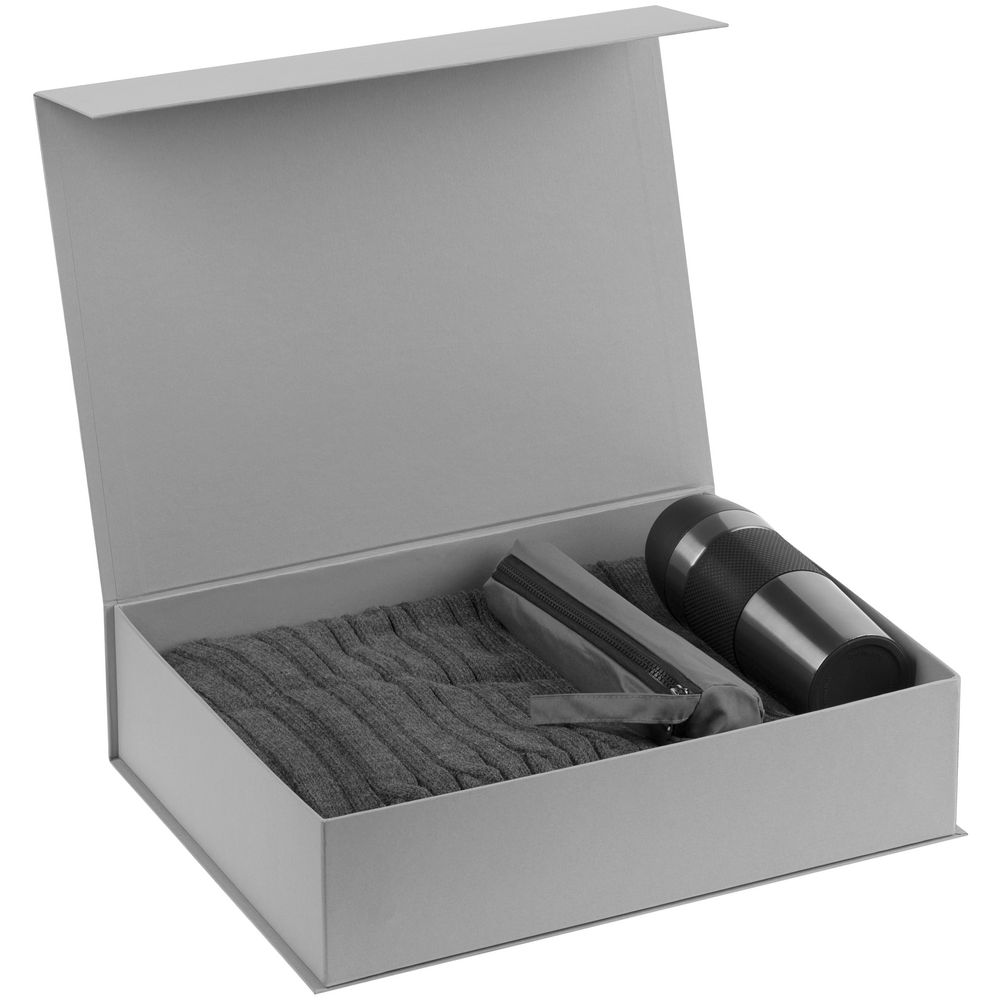 Коробка изготовлена из переплетного картона, кашированного дизайнерской бумагой Fabric Embossing Fine Linen.
