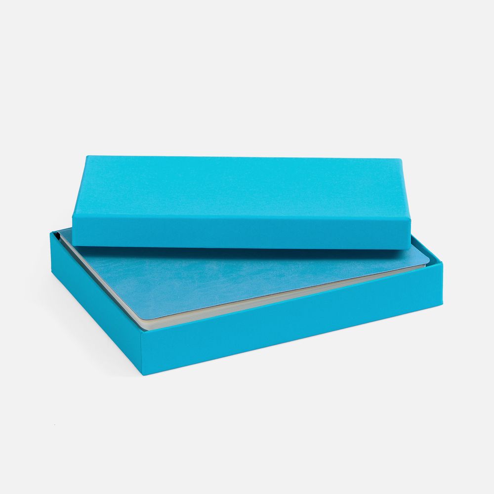 Выполнена из переплетного картона, кашированного дизайнерской бумагой Malmero цвета «Благородный синий».