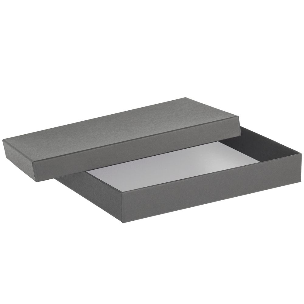 Коробка изготовлена из переплетного картона, кашированного гладкой дизайнерской бумагой Malmero.