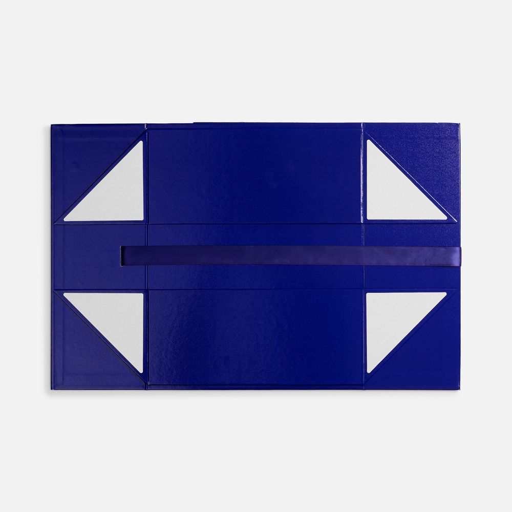 Коробка из переплетного картона с лайнером, ламинированым полуглянцевой текстурной пленкой и устойчивого к царапинам. Крышка на двух магнитах дополнительно фиксируется репсовой лентой.Толщина картона 2 мм.