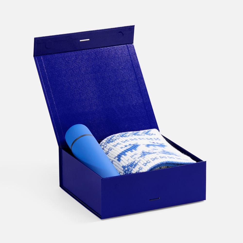 Коробка из переплетного картона с лайнером, ламинированым полуглянцевой текстурной пленкой и устойчивого к царапинам. Крышка на двух магнитах дополнительно фиксируется репсовой лентой.Толщина картона 2 мм.