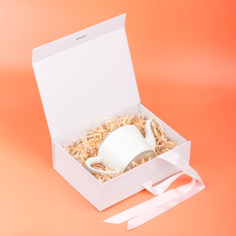 Коробка из переплетного картона с лайнером, ламинированым полуглянцевой текстурной пленкой и устойчивого к царапинам. Крышка на двух магнитах дополнительно фиксируется репсовой лентой.Толщина картона 2 мм.