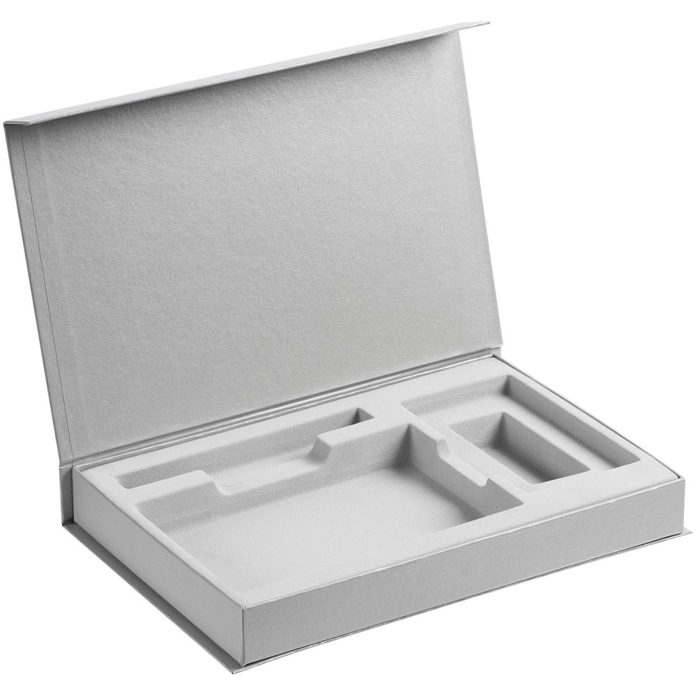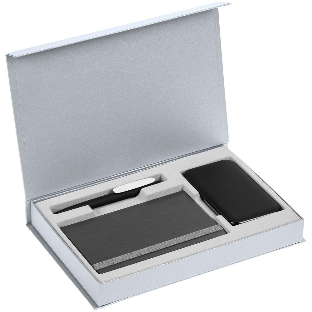 Модель : Коробка Silk с ложементом под ежедневник 10x16 см, аккумулятор и ручку, серебристая