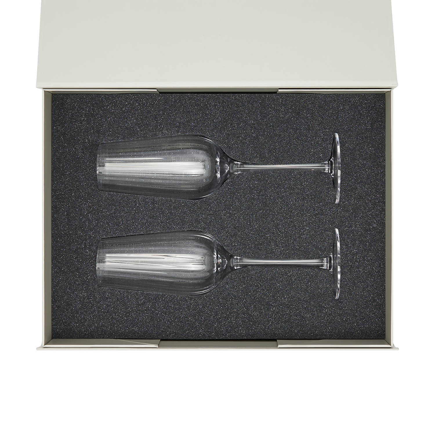 Идеальное решение для надежной и стильной упаковки двух бокалов для шампанского.