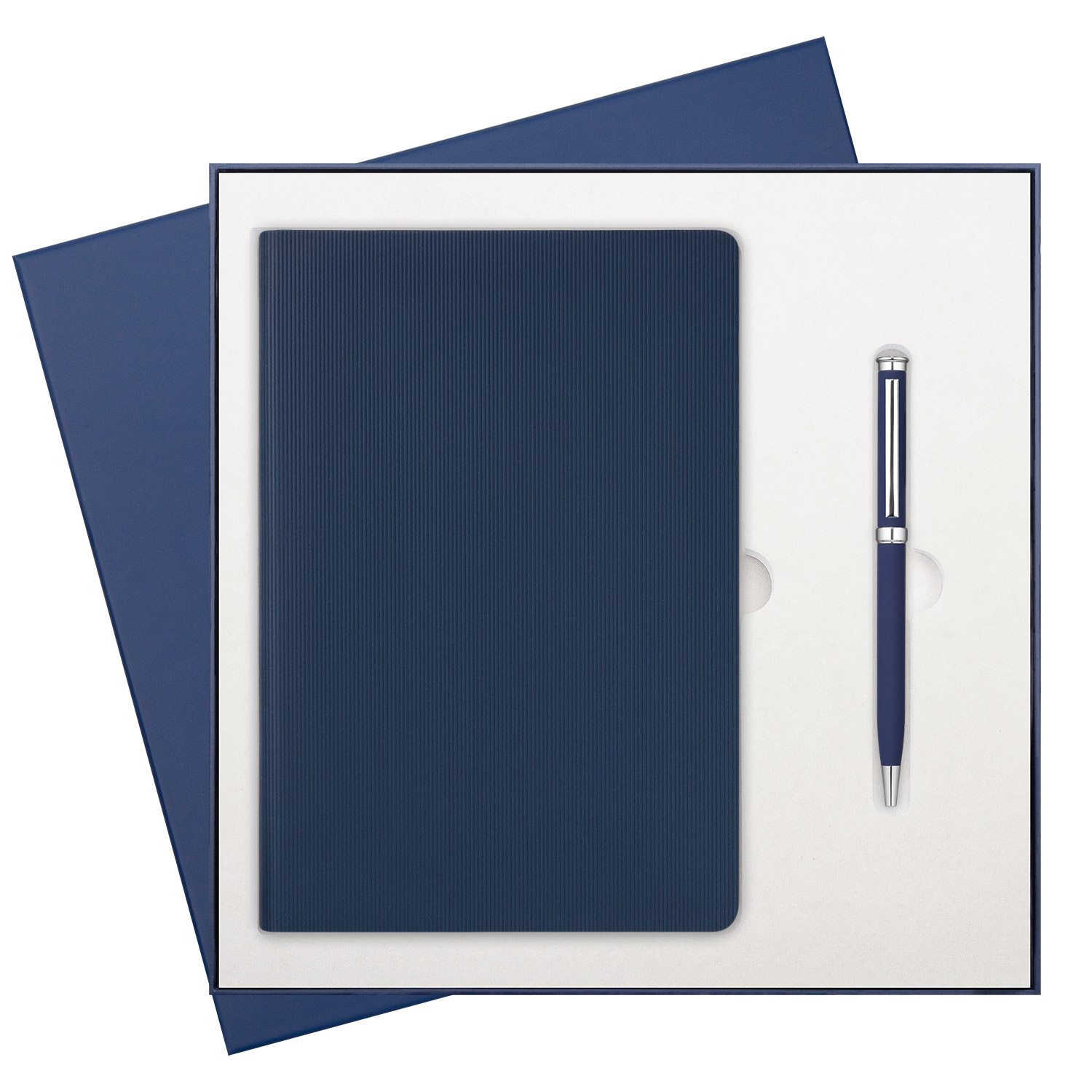 Подарочная коробка с ложементом для ежедневника и ручки, синяя