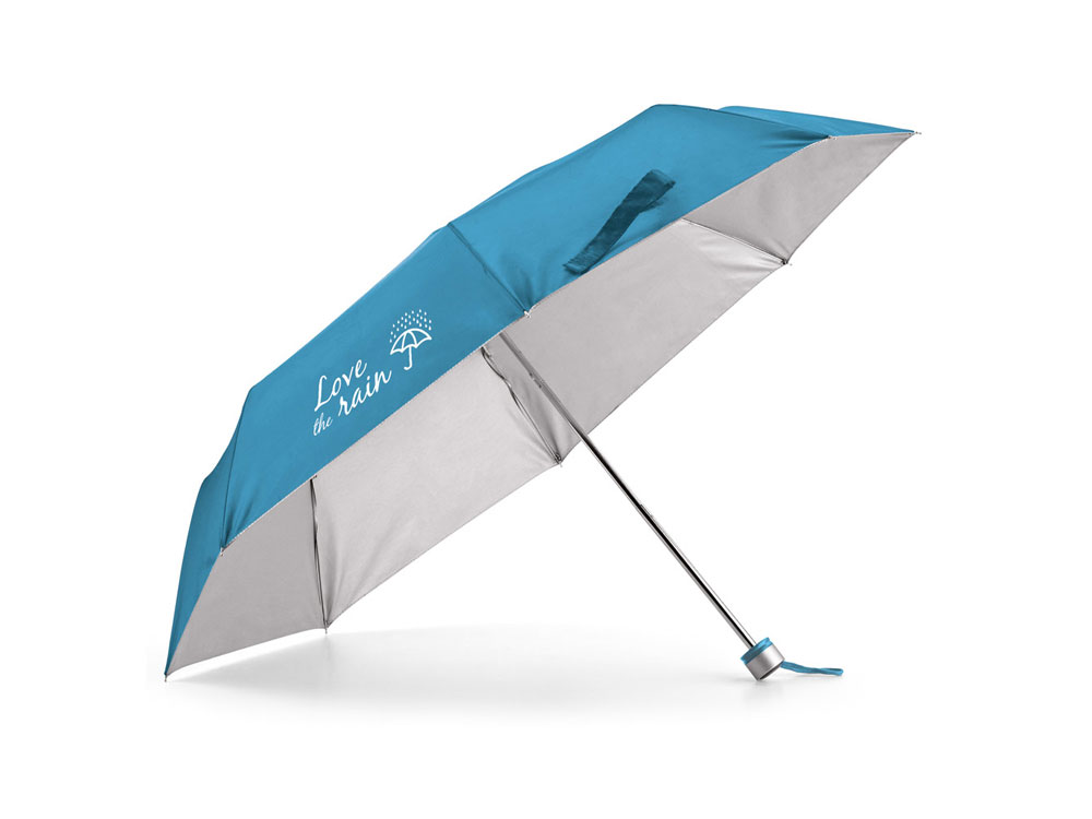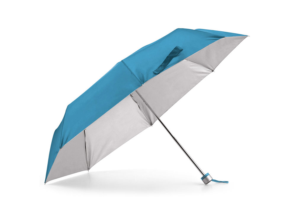 Зонт из полиэстера 190T, складывается на 3 секции и открывается вручную. Доступен в нескольких цветах, с серым цветом внутри. Практичный и легкий зонт, который поставляется в чехле. Зонт: ø960 мм x 240 мм | Сумка: ø40 x 225 мм. Вид нанесения, рекомендуемый поставщиком: трансфер, текстильный принтер