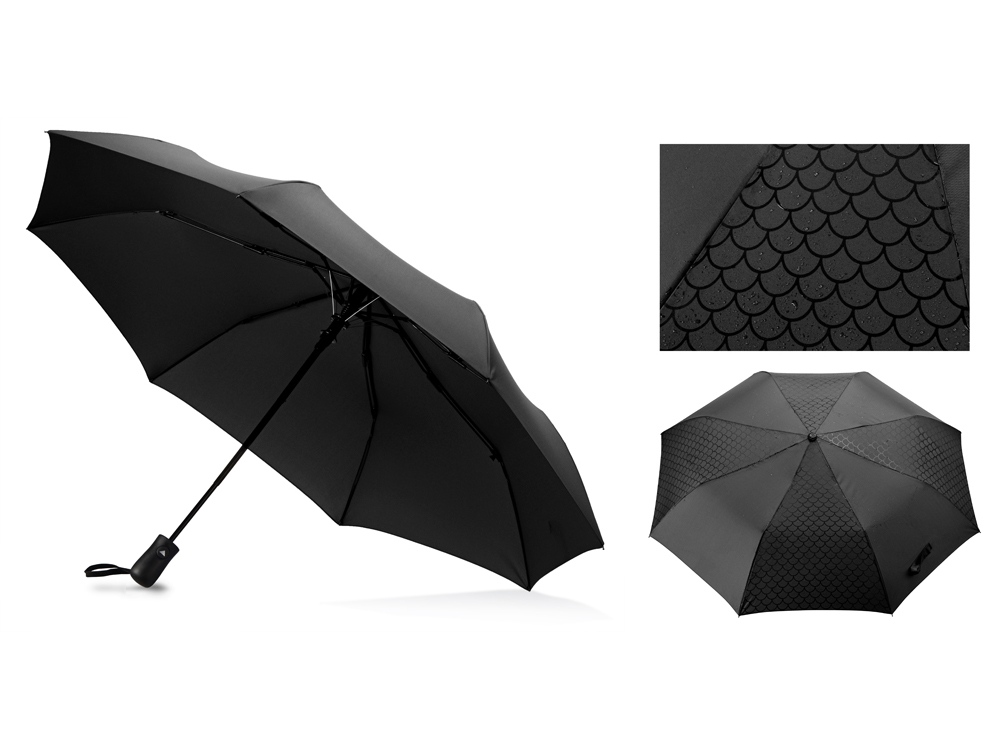 Зонт-полуавтомат с куполом из эпонжа. Рисунок на куполе проявляется, когда зонт намокает под дождем. По мере высыхания купола, рисунок на нем исчезает. Зонт не согнется при сильных порывах ветра и защитит от промокания, так как его каркас снабжен специальной системой противоветровой защиты. Ручка с мягким покрытием soft-touch для большего комфорта.