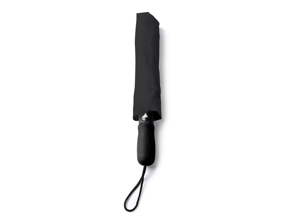 Складной зонт с автоматическим открытием. Ткань эпонж 190T с чехлом. Ручка из ЭВА и металлические спицы черного цвета.