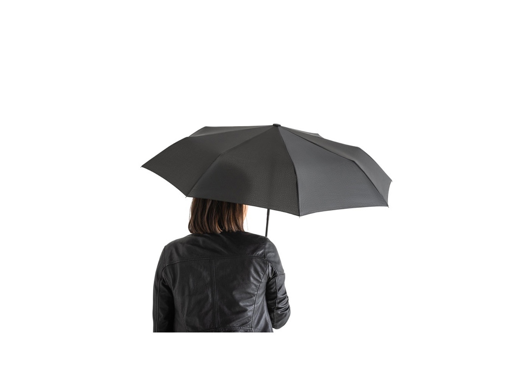 Зонт из эпонжа 190T rPET со спицами из стекловолокна и деревянной ручкой. Складной зонт из 3-х секций, с автоматическим открыванием и закрыванием, ветрозащитный. Поставляется в чехле. Зонтик: ø990 x 285 мм | Сумка: ø55 x 240 мм
